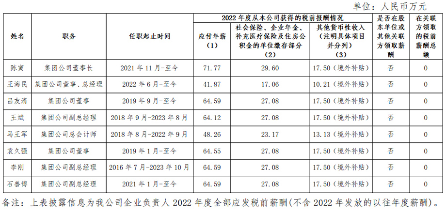 中國旅游集團有限公司企業(yè)負責(zé)人2022年度薪酬情況