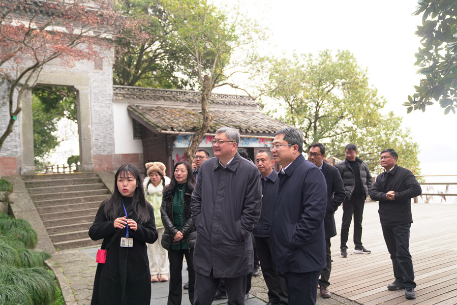 在千島湖,王總現(xiàn)場聽取了關(guān)于大排檔和秀水街兩個升級改造項目匯報,實地考察了中心湖區(qū)龍山島、梅峰島。調(diào)研過程中,王總就千島湖項目后續(xù)發(fā)展與淳安縣委書記楊建根、縣長王翀、副縣長姜君及縣文旅局、千島湖旅游集團等相關(guān)負(fù)責(zé)人進(jìn)行交流。王總表示,千島湖資源稟賦獨特,旅游業(yè)基礎(chǔ)良好、知名度高,集團對千島湖項目高度重視,希望合資公司在淳安縣委縣政府的支持下,雙方共同發(fā)力,通過產(chǎn)品創(chuàng)新和文旅融合,挖掘在地文化,拓寬營銷渠道,做大做強千島湖IP。