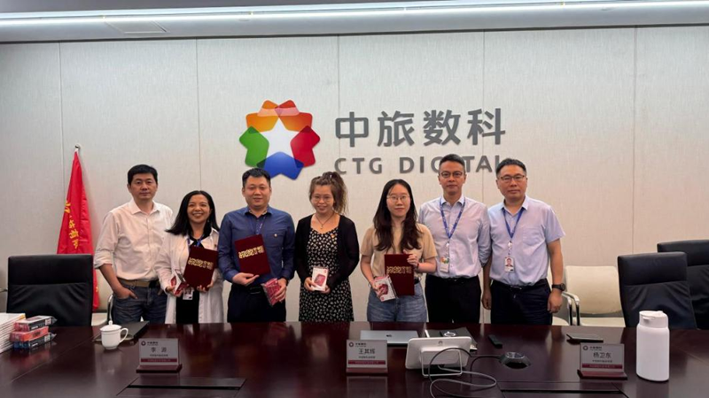 中旅數(shù)科組織“凝心鑄魂強(qiáng)根基、團(tuán)結(jié)奮進(jìn)新征程”座談會(huì)暨“同一個(gè)中旅”主題黨日活動(dòng),聯(lián)動(dòng)深圳、南京、北京三地組織企業(yè)文化知識(shí)競(jìng)賽,舉行上半年“先進(jìn)個(gè)人”表彰頒獎(jiǎng)和“黨員突擊隊(duì)”授旗儀式。