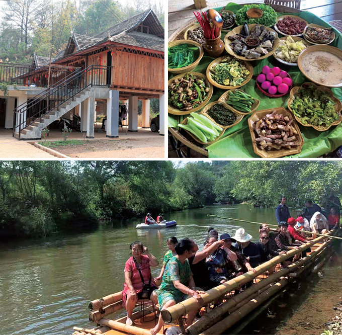 圖1-3:特色民居;特色美食是大自然的饋贈;竹筏漂流