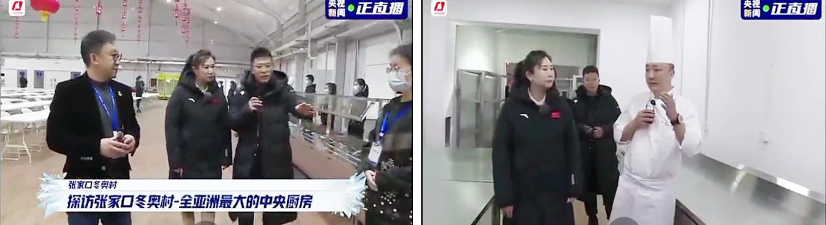 12月15日,CCTV5-中央電視臺(tái)體育頻道的記者來(lái)到張家口運(yùn)動(dòng)員餐廳,以直播形式揭秘了這座亞洲最大的“中央廚房”。經(jīng)過(guò)餐飲組同事連日搶工,通過(guò)直播現(xiàn)場(chǎng)鏡頭所及之處整齊的餐臺(tái)設(shè)施、合理的動(dòng)線(xiàn)分區(qū),實(shí)習(xí)生的專(zhuān)業(yè)服務(wù)形象,輔以餐飲組同事吳夢(mèng)云的專(zhuān)業(yè)講解,我們可以看到,運(yùn)動(dòng)員餐廳已迅速展新顏。直播節(jié)目中,大廚王旭在介紹后廚情況時(shí),多次提到“我們中國(guó)旅游集團(tuán)”,高度的企業(yè)自豪感溢于言表。
