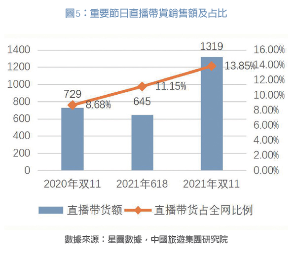 旅游業(yè)多主體參與「雙11」,為疫情下旅游發(fā)展注入新動(dòng)能。飛豬數(shù)據(jù)顯示,2021年「雙11」活動(dòng)商品成交額同比增長超60%,12個(gè)品牌成交額突破1億元,比2020年增加了3個(gè)?!鸽p11」期間包括主播、達(dá)人在內(nèi)的內(nèi)容生態(tài)帶來的新用戶同比增長超70%。希爾頓新增會(huì)員數(shù)超40萬,長隆新增會(huì)員數(shù)超12萬。今年「雙11」冰雪旅游成為熱門產(chǎn)品, 冰雪旅游商品銷量同比增長206%,其中長白山滑雪酒店套餐累計(jì)銷量超10萬件。除傳統(tǒng)的「雙11」活動(dòng)參與者OTA外,今年部分酒店、民宿和景區(qū)也參與到大促之中,參與「雙11」的鄉(xiāng)村民宿數(shù)量創(chuàng)下新高,其中近7成是首次參加。截至11月12日零點(diǎn), 鄉(xiāng)村民宿套餐銷量同比增長超16倍;小豬民宿進(jìn)駐薇婭直播間,截至11月3日,民宿套餐共售出超過26000套;薇婭直播間的隨心住產(chǎn)品售出超過11400 套。今年旅游產(chǎn)品也首次列入天貓滿200減30元活動(dòng)之中,這種「預(yù)約未來旅游」的囤貨模式一定程度上提振了旅游消費(fèi),但由于后續(xù)出行的不確定性以及疫情反復(fù)影響,旅游產(chǎn)品一直難以成為「雙11」爆款。