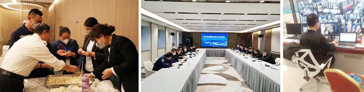 ——雪如意睿景酒店接待來自語言服務、體育、電力、志愿者、技術(shù)、醫(yī)療服務、防疫、賽事服務、食品安全、交通、醫(yī)療、安保等各個領(lǐng)域的近三百名保障人員。2021年12月31日晚,酒店精心組織相關(guān)保障人員一起包餃子,讓大家跨越各自領(lǐng)域,融為保障服務一家人。