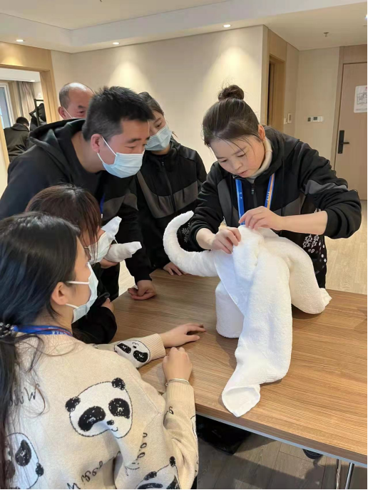 三地海泉灣積極響應(yīng),在嚴(yán)密組織、嚴(yán)肅紀(jì)律的前提下,第一時間進行廣泛內(nèi)部動員,共遴選出14名專業(yè)強、素質(zhì)佳、表現(xiàn)優(yōu)的核心骨干,按要求分批抵達(dá)張家口冬奧村。目前,在中旅酒店協(xié)調(diào)部署下,14名援奧骨干已分別就任公共區(qū)域主管、保潔主管、健身中心主管、庫房及客房部樓層主管、中西餐廚師等崗位,承擔(dān)起服務(wù)培訓(xùn)和團隊管理工作。援奧骨干盡職盡責(zé),為北京冬奧會的順利舉辦提供專業(yè)性服務(wù),獲得了冬奧村主管機構(gòu)的一致好評。咸陽海泉灣派出的骨干董婭紅個人被評為“服務(wù)標(biāo)兵”,她所負(fù)責(zé)的公寓樓5號院班組榮獲“先進班組”稱號。