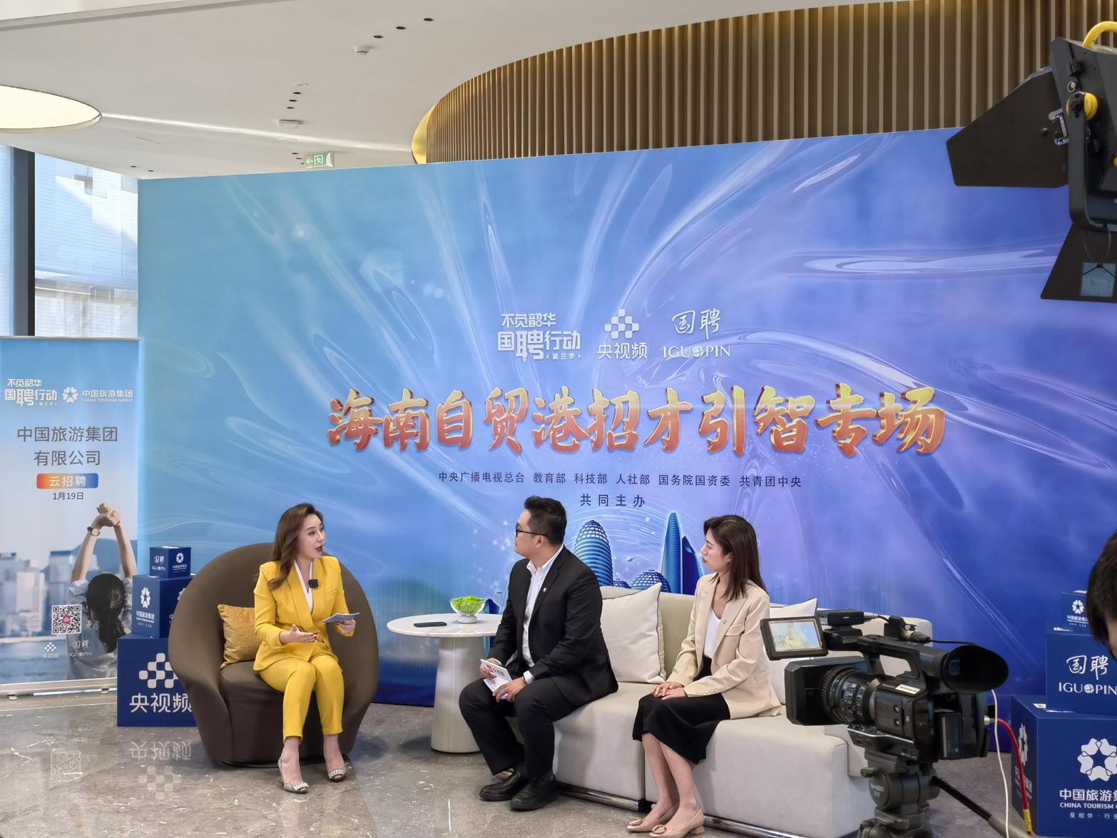 1月19日下午,由中央廣播電視總臺攜手教育部、科技部、人社部、國務(wù)院國資委、共青團(tuán)中央等六部委共同發(fā)起,央視頻攜手國投人力共同主辦的“國聘行動(dòng)”第三季——“不負(fù)韶華 國聘行動(dòng)”之海南自貿(mào)港招才引智專場在??谂e辦,集團(tuán)作為首場直播企業(yè),攜300余個(gè)崗位,在??趪H免稅城接待中心開啟線上“云”招聘直播。